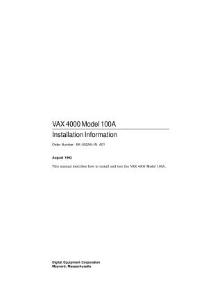 Intended for anyone installing the VAX 4000 Model 100A, the manual covers: