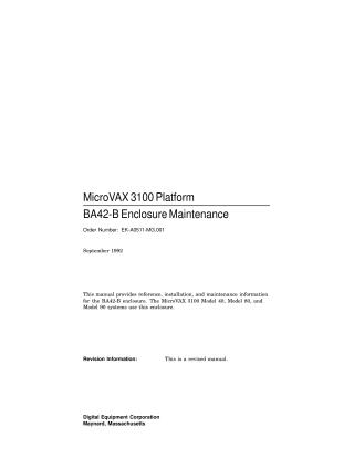 This document is a maintenance manual for the Digital Equipment Corporation MicroVAX 3100 Platform BA42-B enclosure, published in September 1992.