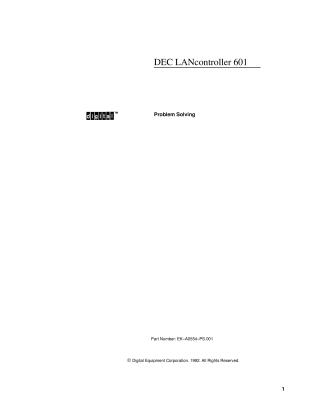 This document, "DEC LANcontroller 601 Problem Solving," is a guide for troubleshooting issues related to the DEC LANcontroller 601, specifically focusing on the Network Interface Card (NIC) and Ethernet connectivity.