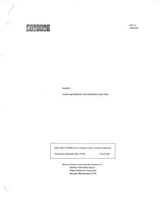 This document describes MAGSPY, a PDP-12 program designed to display data from a LINC-tape using a "moving window" on the PDP-12 scope. It allows users to scan data, which can be interpreted either as waveforms or as packed ASCII characters, with the display rate controlled by the Analog-Digital Knob 7.