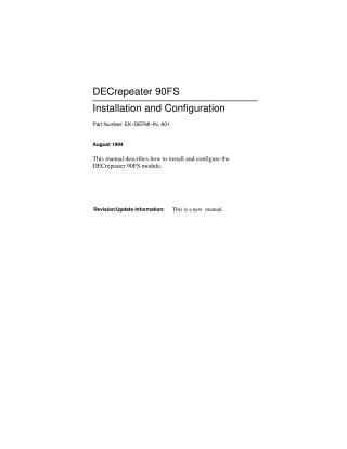 This document is the "DECrepeater 90FS Installation and Configuration" manual, published in August 1994.